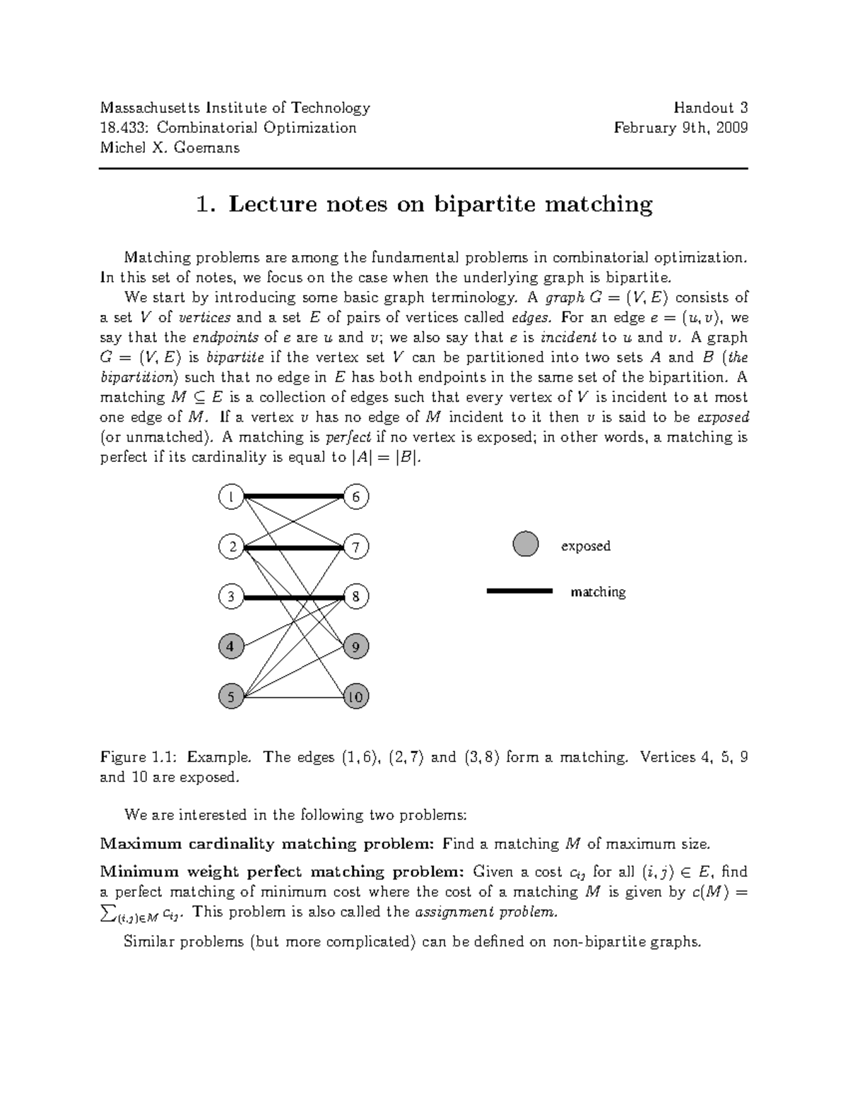 Matching-notes - Prof is Naveen Garg - Massachusetts Institute of ...