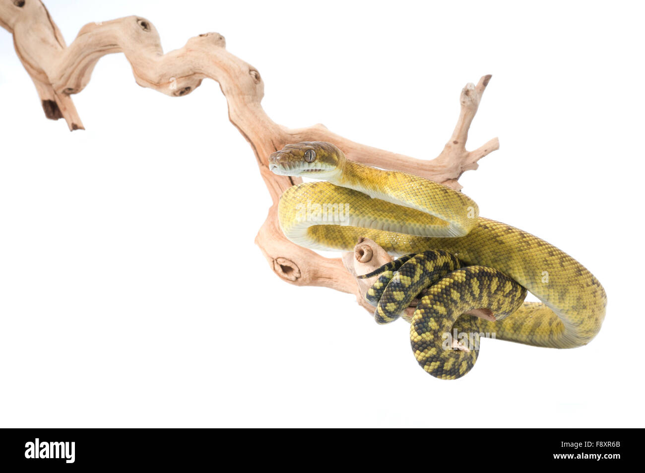 Amethystine python coiled up on branch Captive subject Stock Photo - Alamy