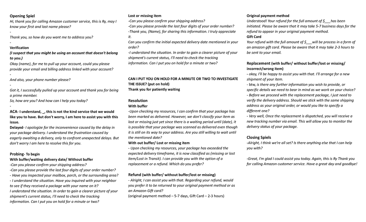 Customer Service Script: Amazon Call Handling Guide - Studocu