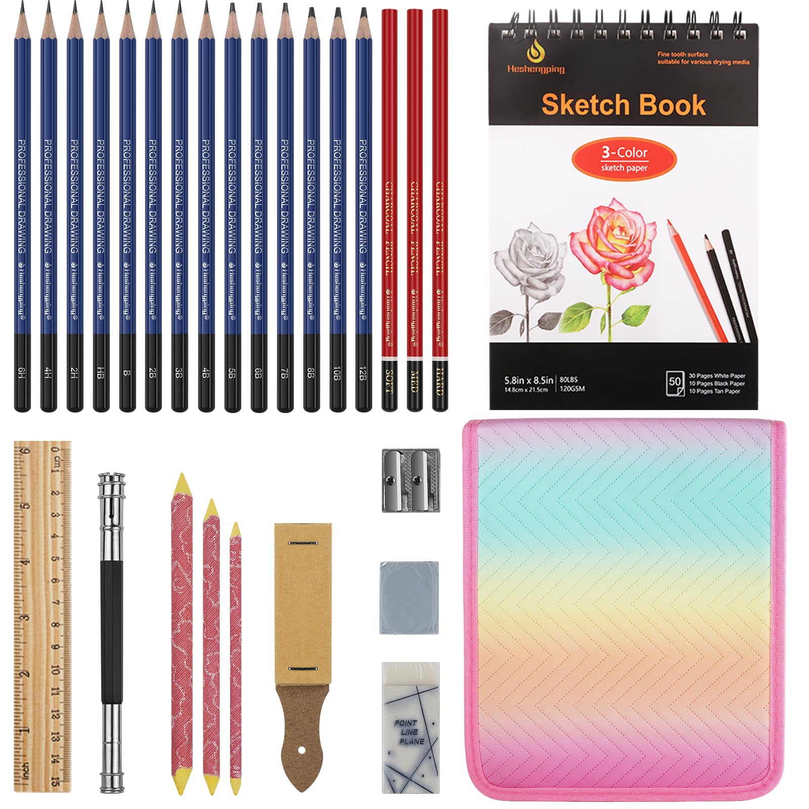 Amazon.com: Humyoun 24 Pcs Sketch Drawing Pencils Kit Includes 5.5 x 8. ...