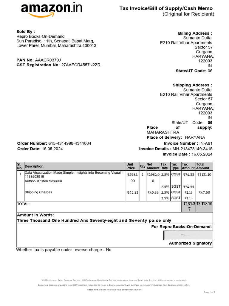 Amazon Books Bill | PDF | Invoice | Taxation