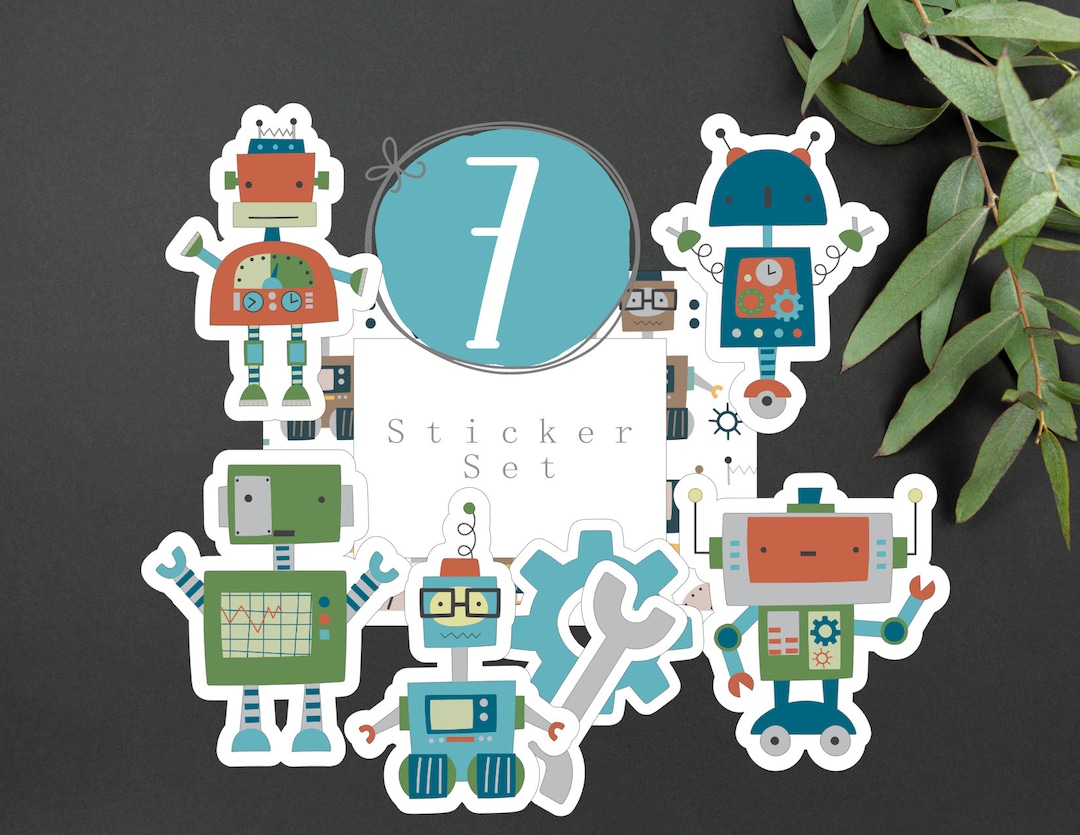 Kids Cute Robot Vinyl Sticker Set Robot Theme Party Stickers Cute Robot ...