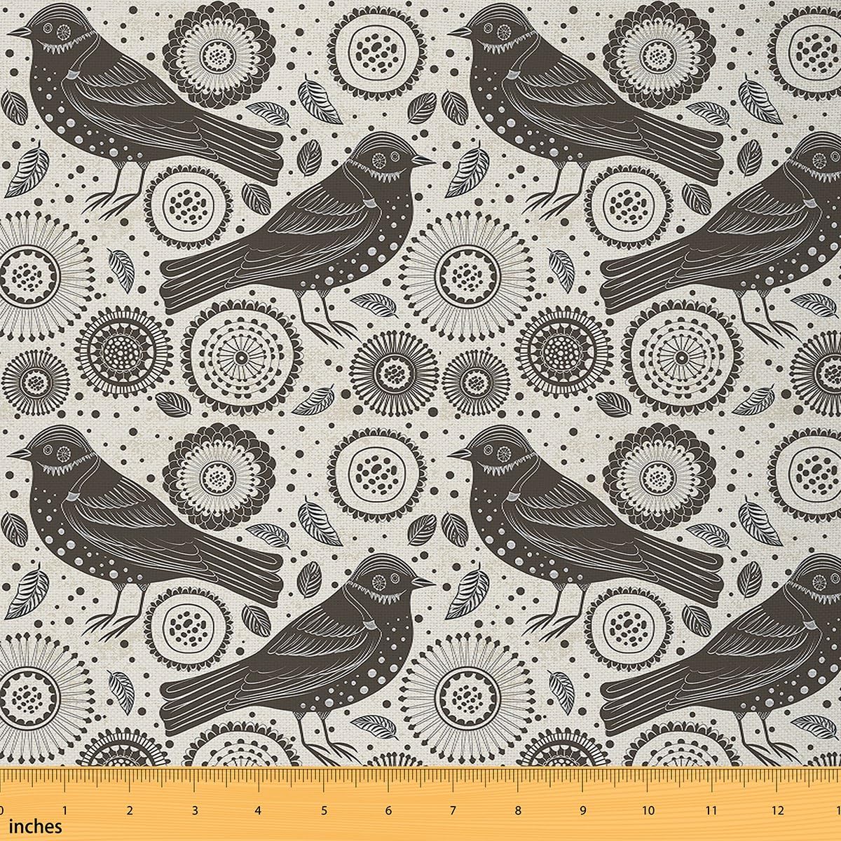 Bird Upholstery Fabric for Chairs, Cute Birds Floral Fabric by The Yard ...
