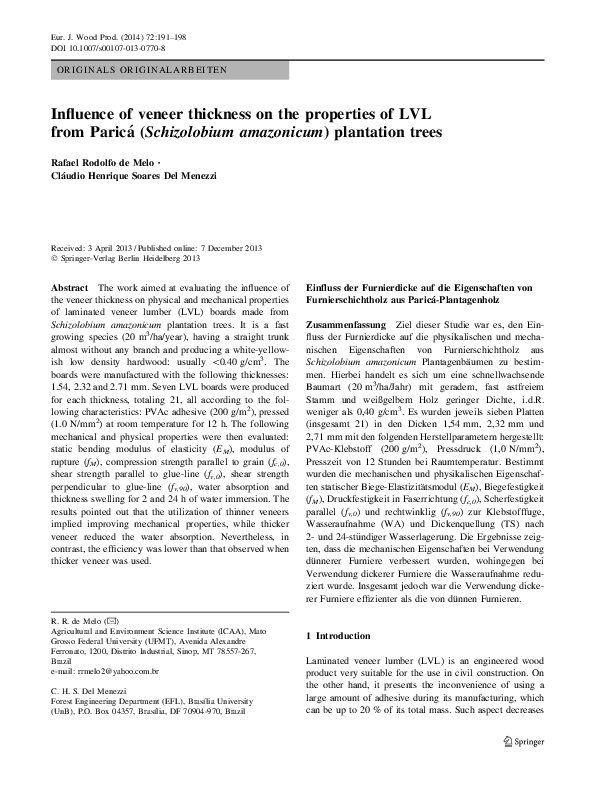 (PDF) Influence of veneer thickness on the properties of LVL from ...