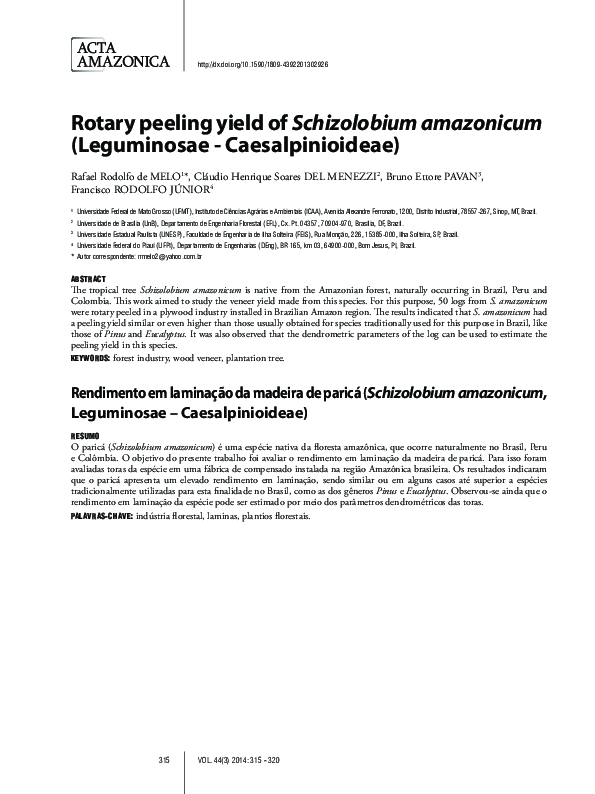 (PDF) Rotary peeling yield of Schizolobium amazonicum (Leguminosae ...