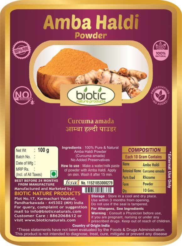 Amba Haldi Powder (Curcuma amada) Mango ginger powder - 100g | Biotic ...