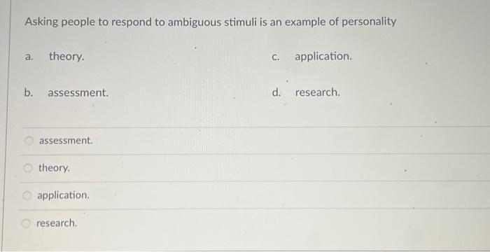Solved Asking people to respond to ambiguous stimuli is an | Chegg.com