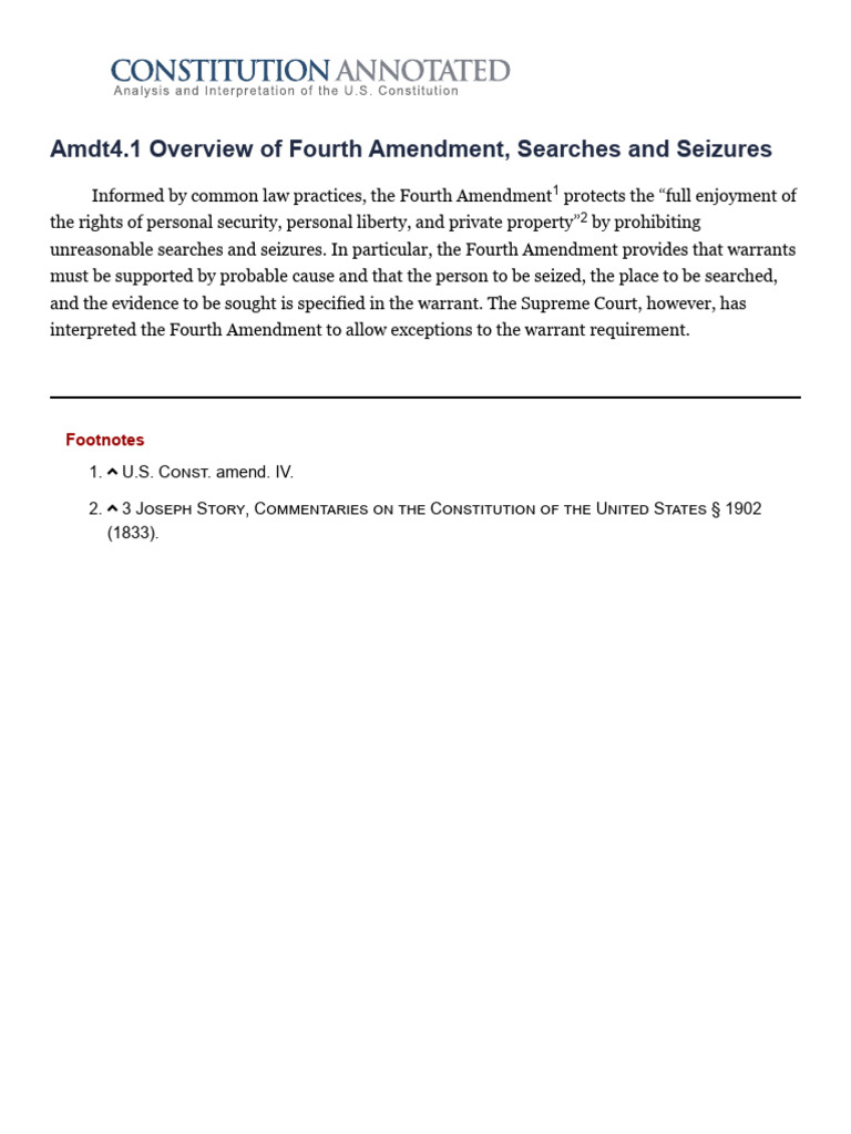 4 Overview of Fourth Amendment Searches and Seizures - Constitution ...