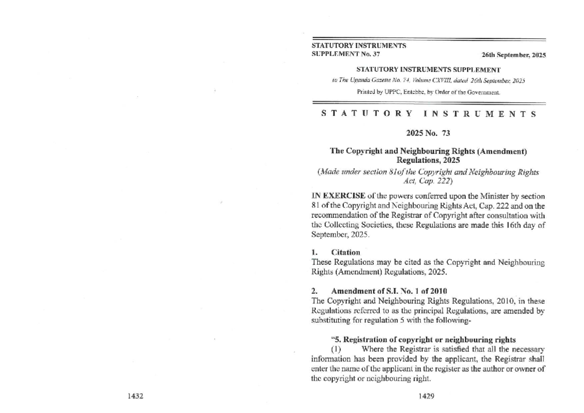 STATUTORY INSTRUMENTS SUPPLEMENT No. 37: Copyright Amendments 2025 ...