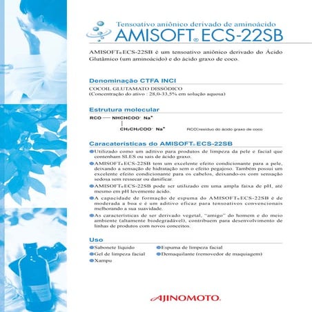 Ajinomoto Brochure AMISOFT ECS 22W E 200729 | PDF | Surfactant | Acid