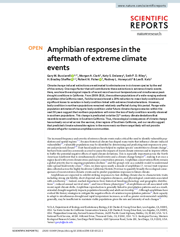 (PDF) Amphibian responses in the aftermath of extreme climate events