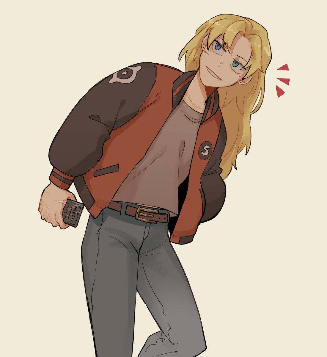 Safebooru - 1girl amphibia belt blonde hair blue eyes bomber jacket ...