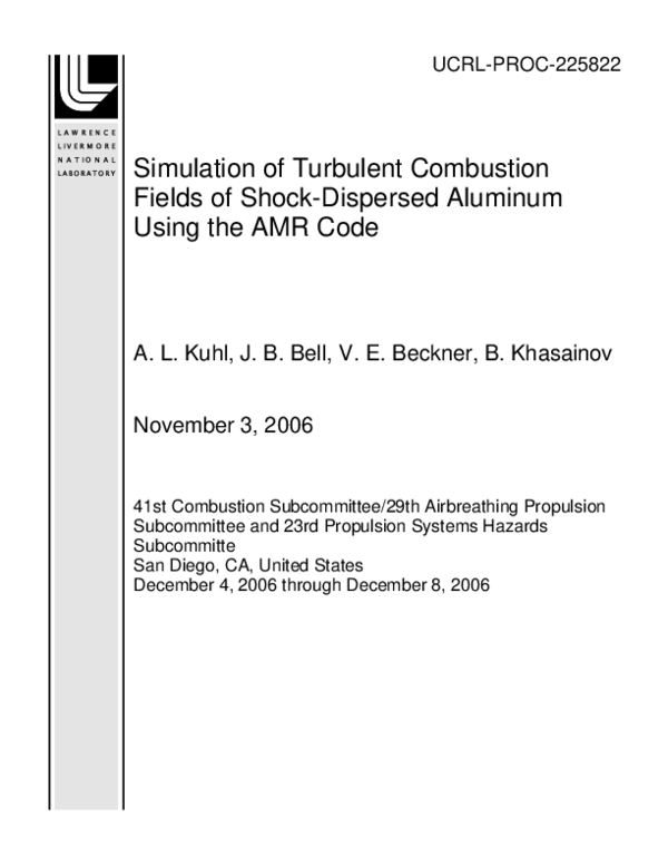 (PDF) Simulation of Turbulent Combustion Fields of Shock-Dispersed ...