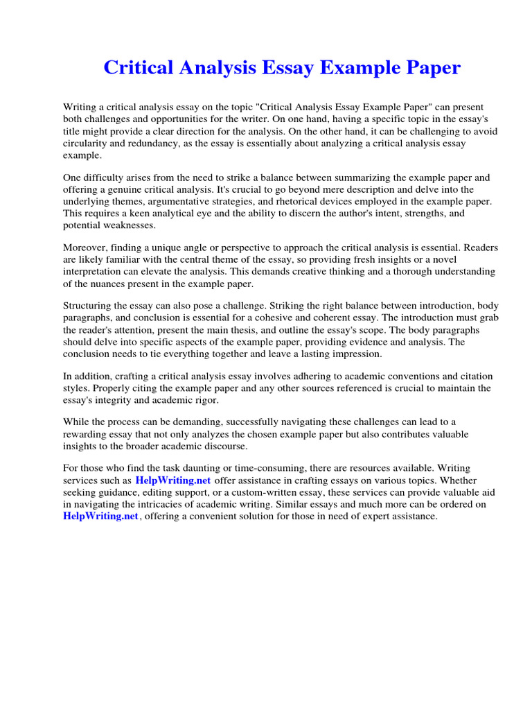 Critical Analysis Essay Example Paper | PDF | Essays | Critical Thinking