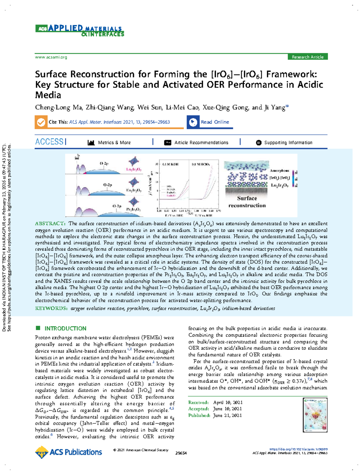 Surface Reconstruction and OER Performance of Lu2Ir2O7 in Acidic Media ...