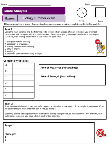 Exam Analysis Template | Teaching Resources