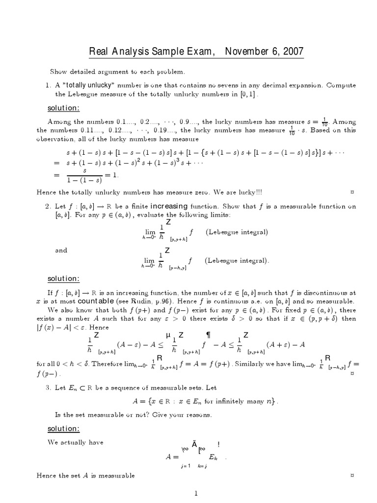 Real Analysis Sample Exam With Solution 2007-11-12 | Measure ...