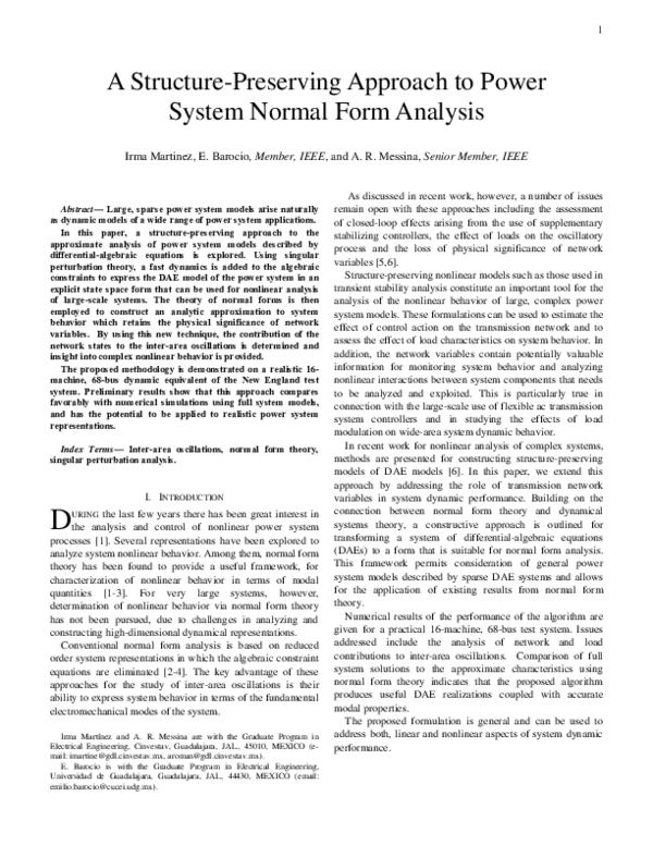 (PDF) A Structure-Preserving Approach to Power System Normal Form Analysis