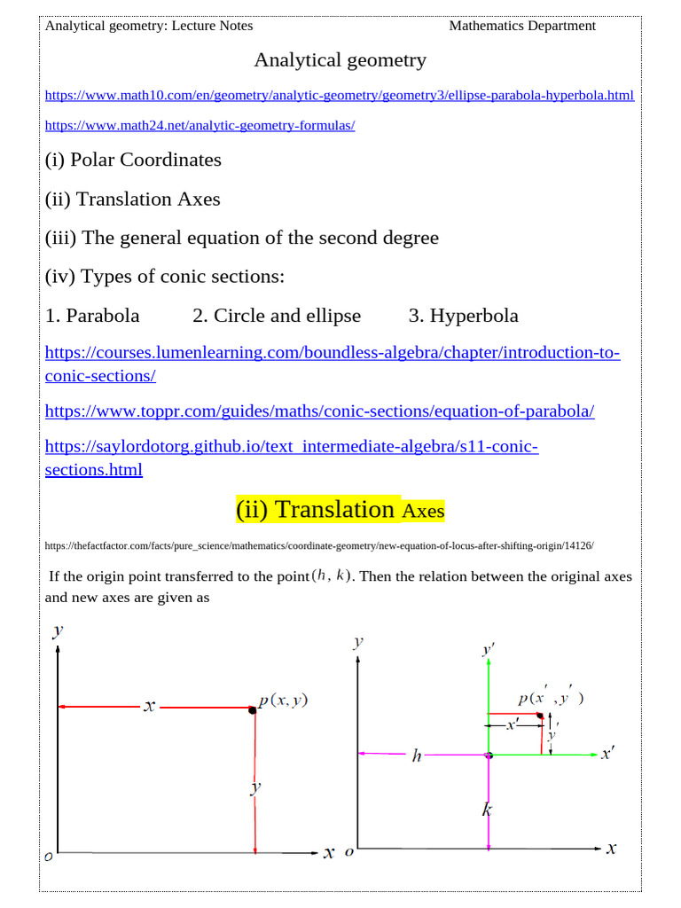 Analytic Geometry - Notes | PDF | Ellipse | Line (Geometry)