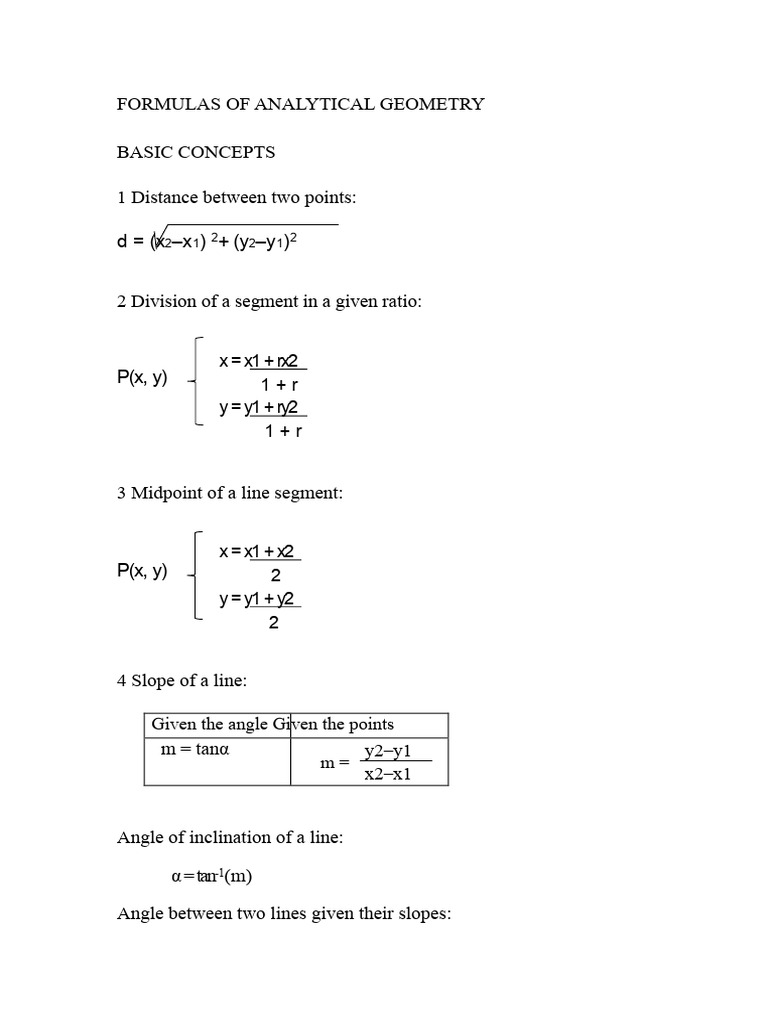 Analytic Geometry Formulas | PDF | Elementary Geometry | Manifold