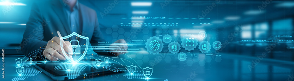 cybersecurity. Businessman analyzing cybersecurity trends and threat ...