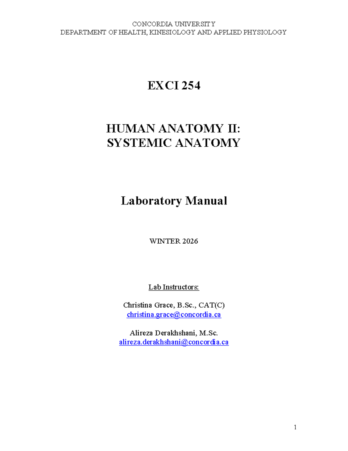 EXCI 254 Human Anatomy II: Systemic Anatomy Lab Manual W2026 - Studocu