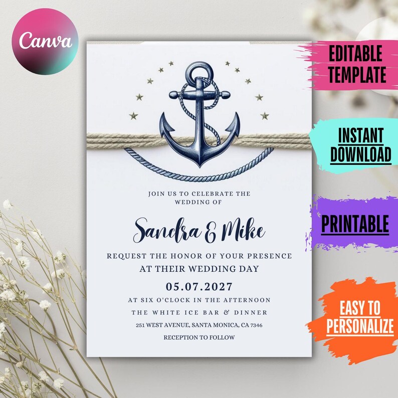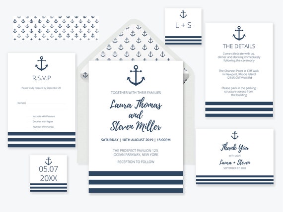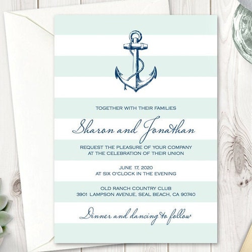 Nautical Anchor Wedding Invitation Printable Templates - Etsy
