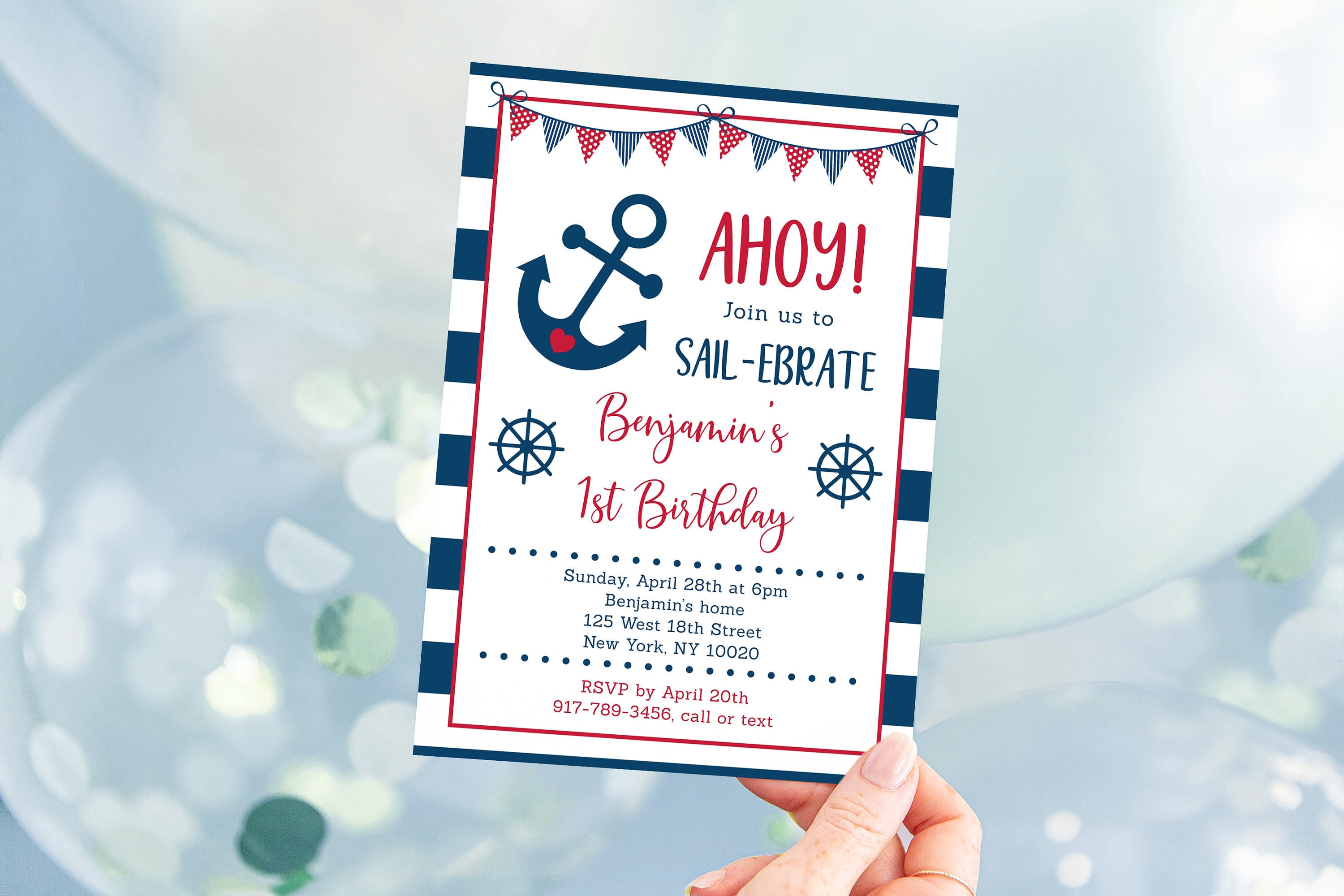 Nautical Birthday Invitation, Anchor, Sail Boat Invitation, Fishing ...