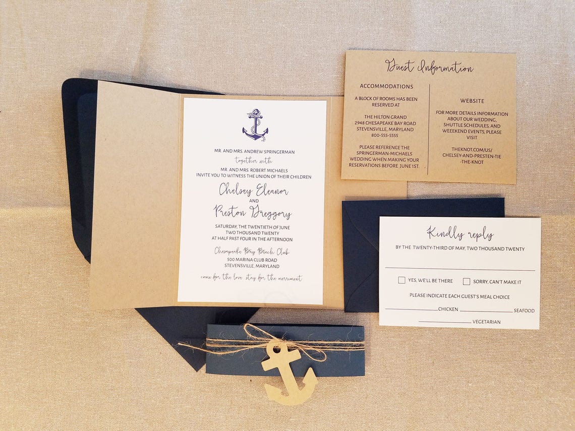Anchor Wedding Invitation Set, Nautical Wedding Invitations, Vintage ...