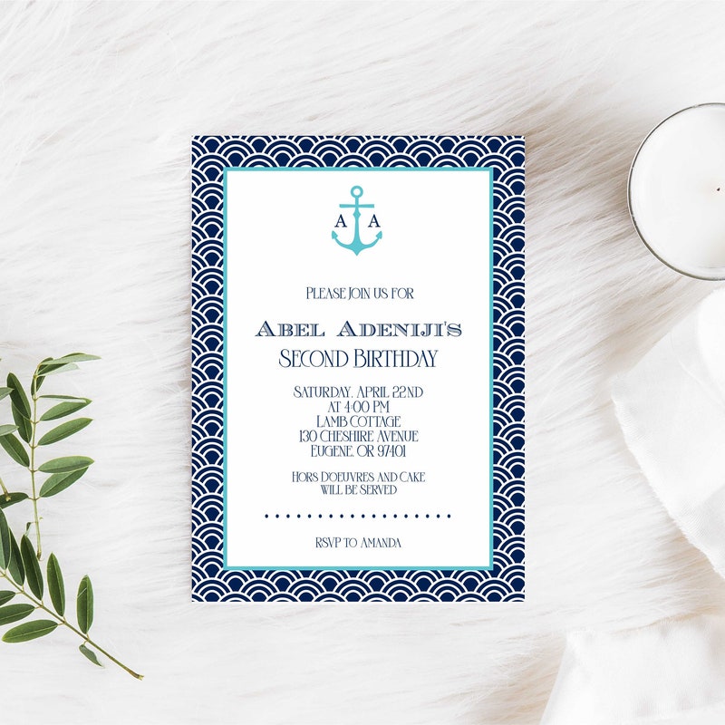 Editable Anchor Birthday Invitation Nautical Birthday Invite - Etsy