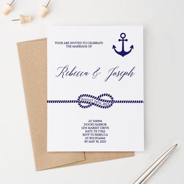Nautical Wedding Invitation, Anchor Wedding Invitation, Wedding ...