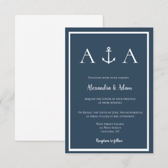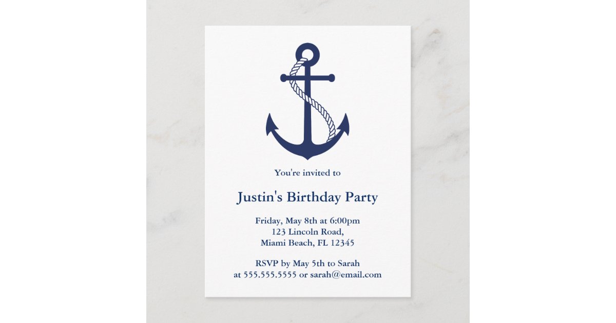 Modern Nautical Navy Blue Anchor invitations | Zazzle