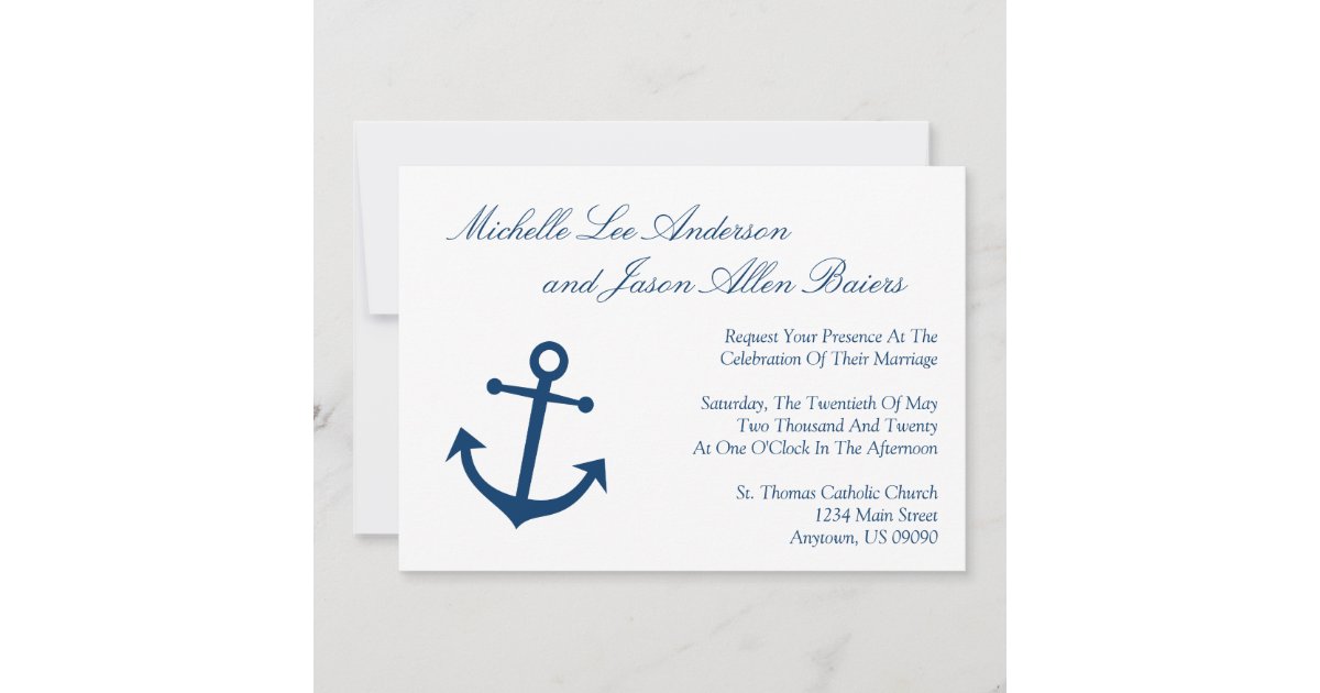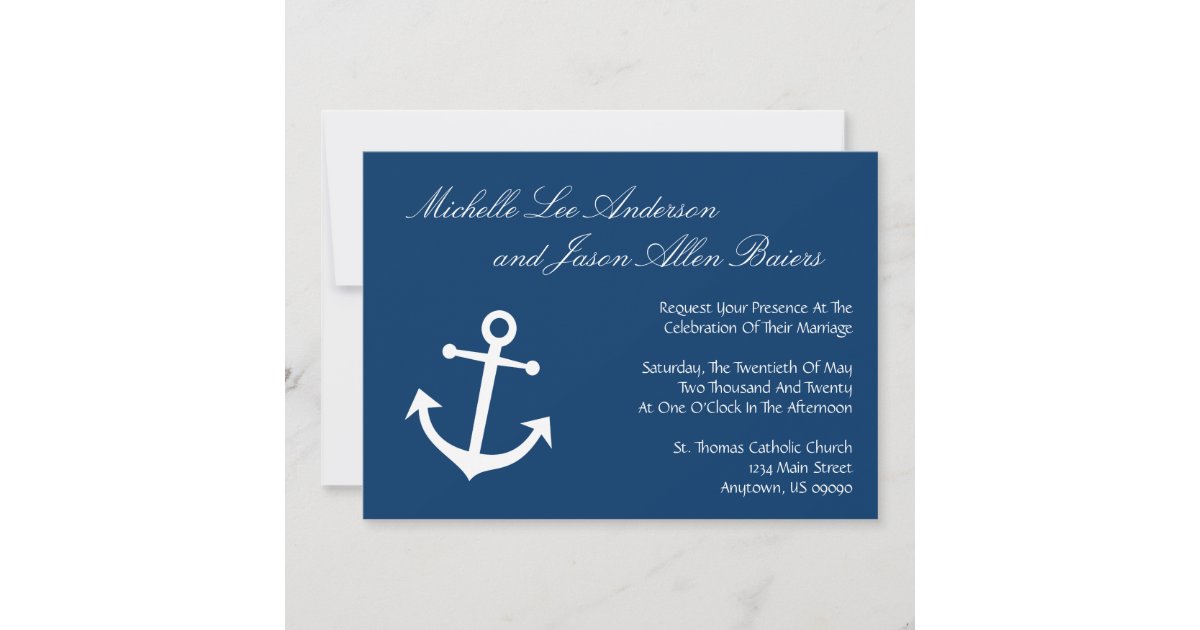 Nautical Boat Anchor Wedding Invitations (Navy) | Zazzle