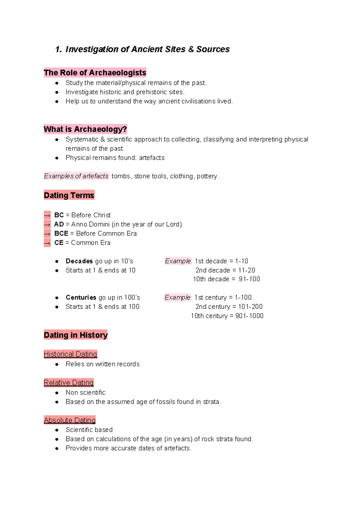 Prelim Ancient History Notes - 1. Investigation of Ancient Sites ...