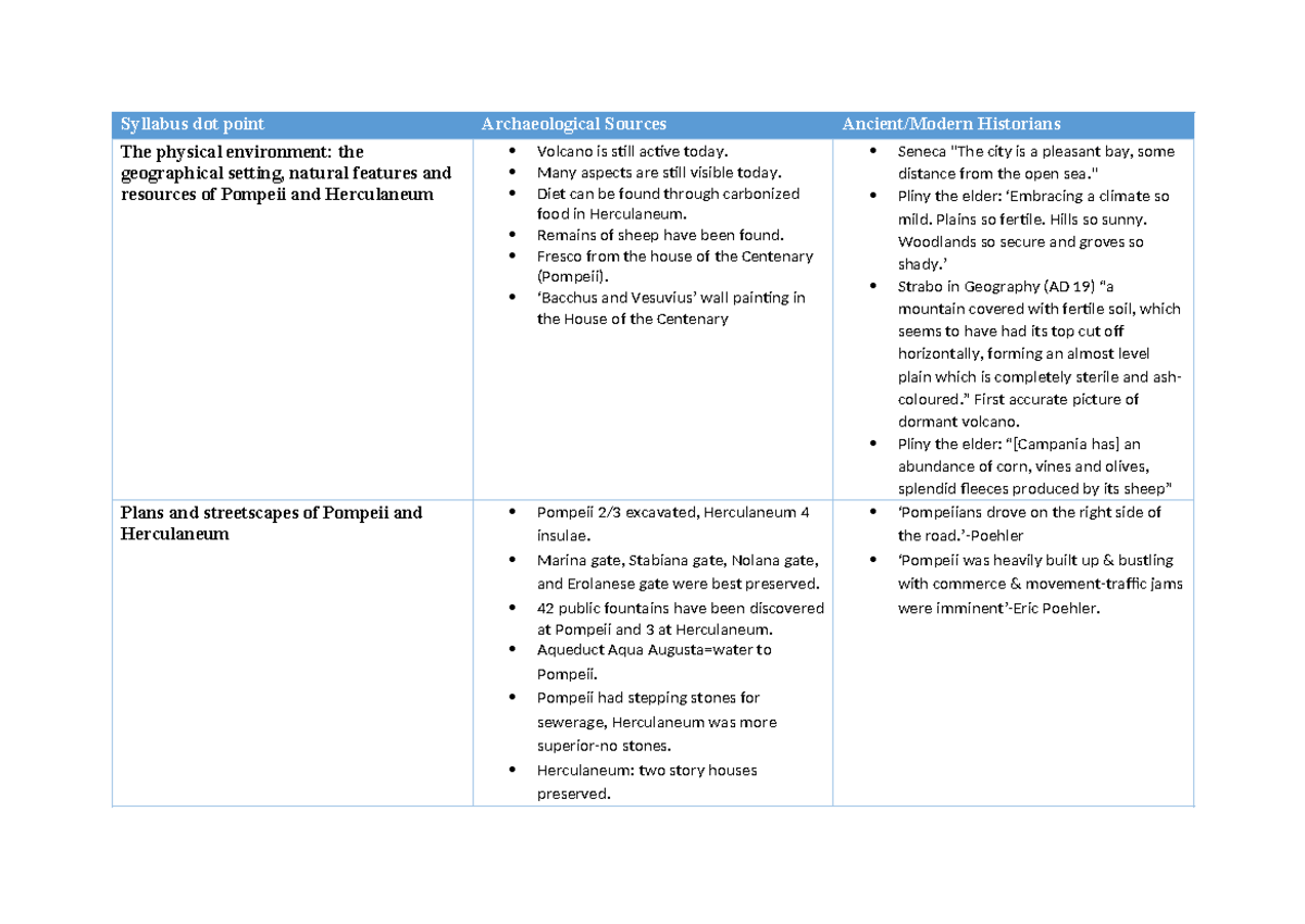 Full Year 12 ANC notes - Ancient Notes - Pompeii and Herculaneum Topic ...