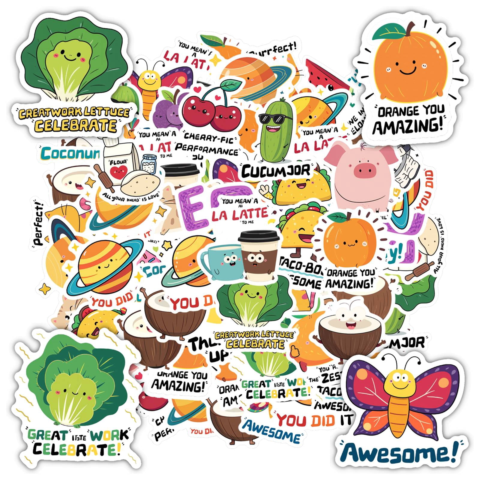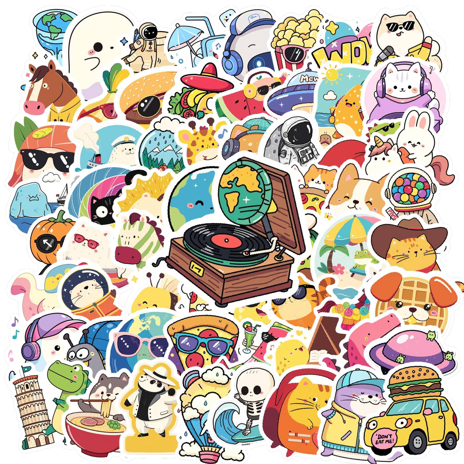 35pcs-70pcs Cute Animal Stickers Funny Food Decals Summer Cartoon ...
