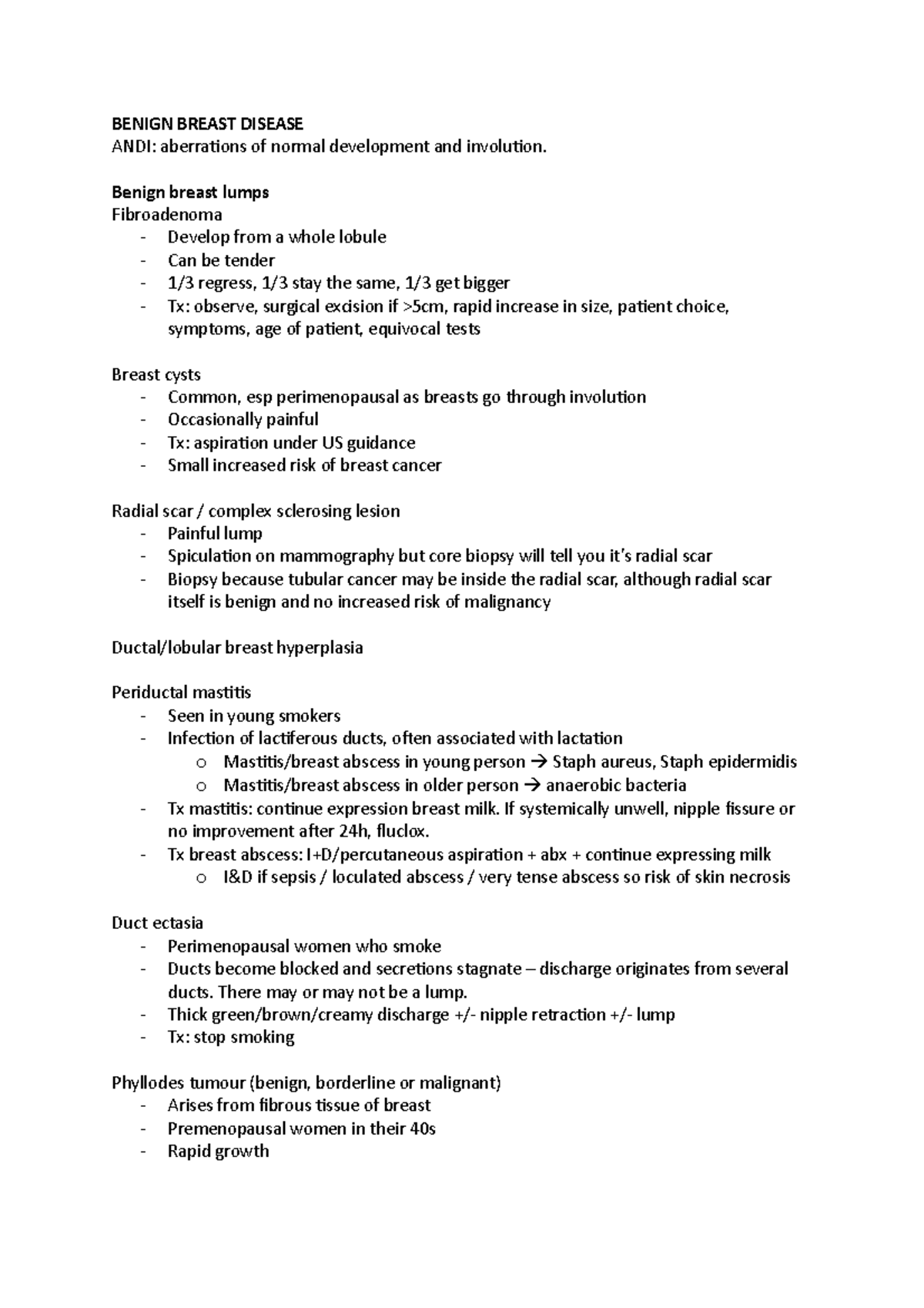 Finals notes on breast - BENIGN BREAST DISEASE ANDI: aberrations of ...