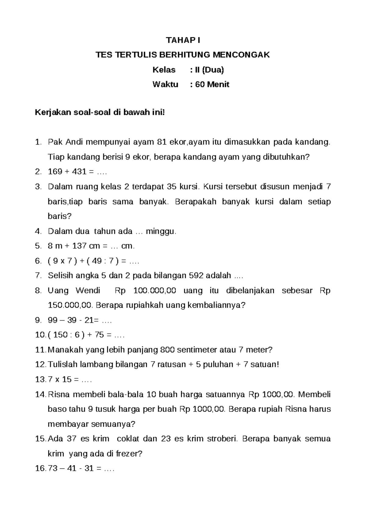 Soal Calistung Kelas II (Dua) 2025: Tes Tertulis dan Kunci Jawaban ...