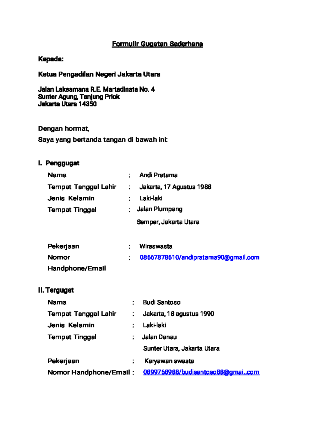 Muster Gugatan Perbuatan Melawan Hukum 2026 - Andi Pratama vs Budi ...
