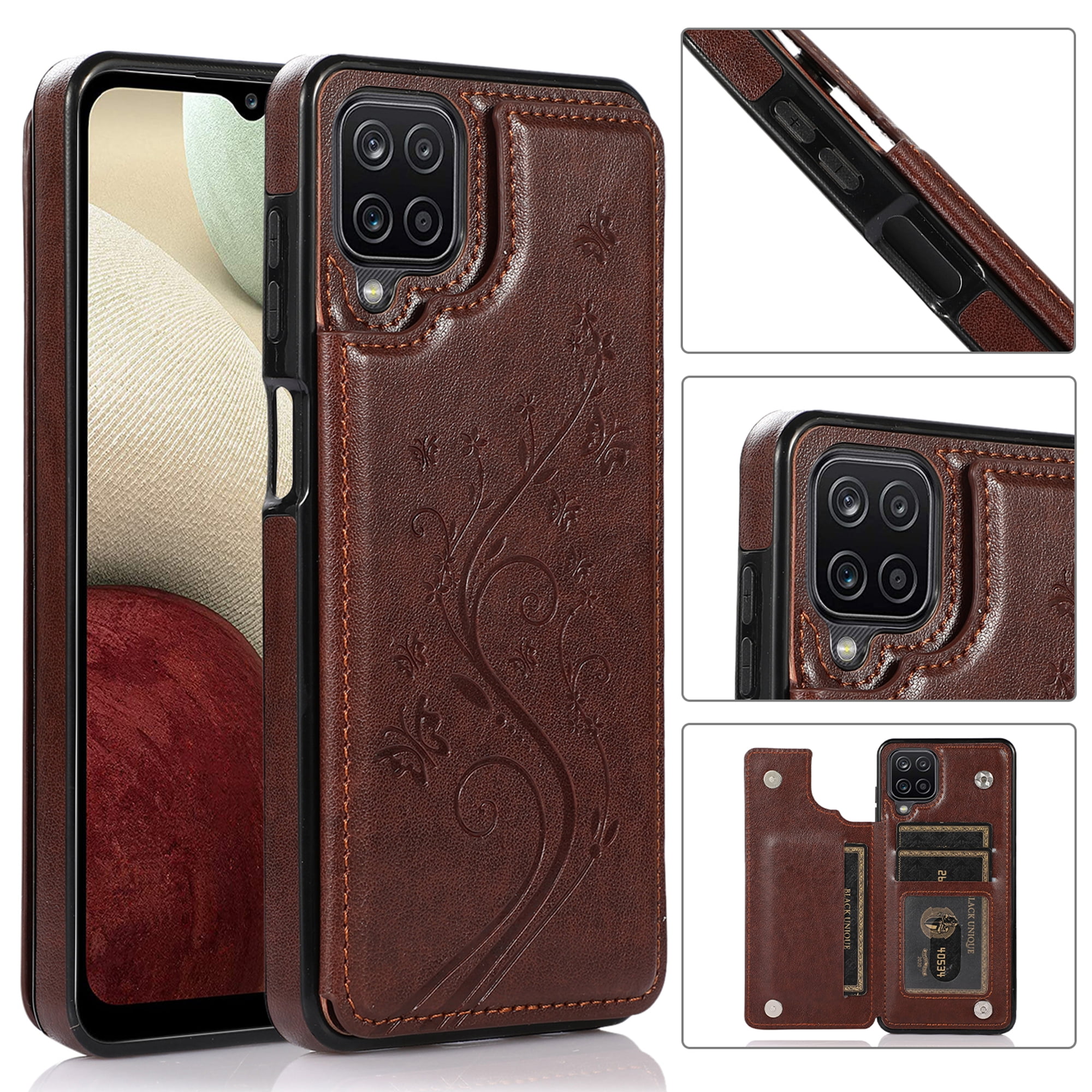 Galaxy A12 Wallet Case, Shockproof Rubber Card Holder Wallet PU Leather ...