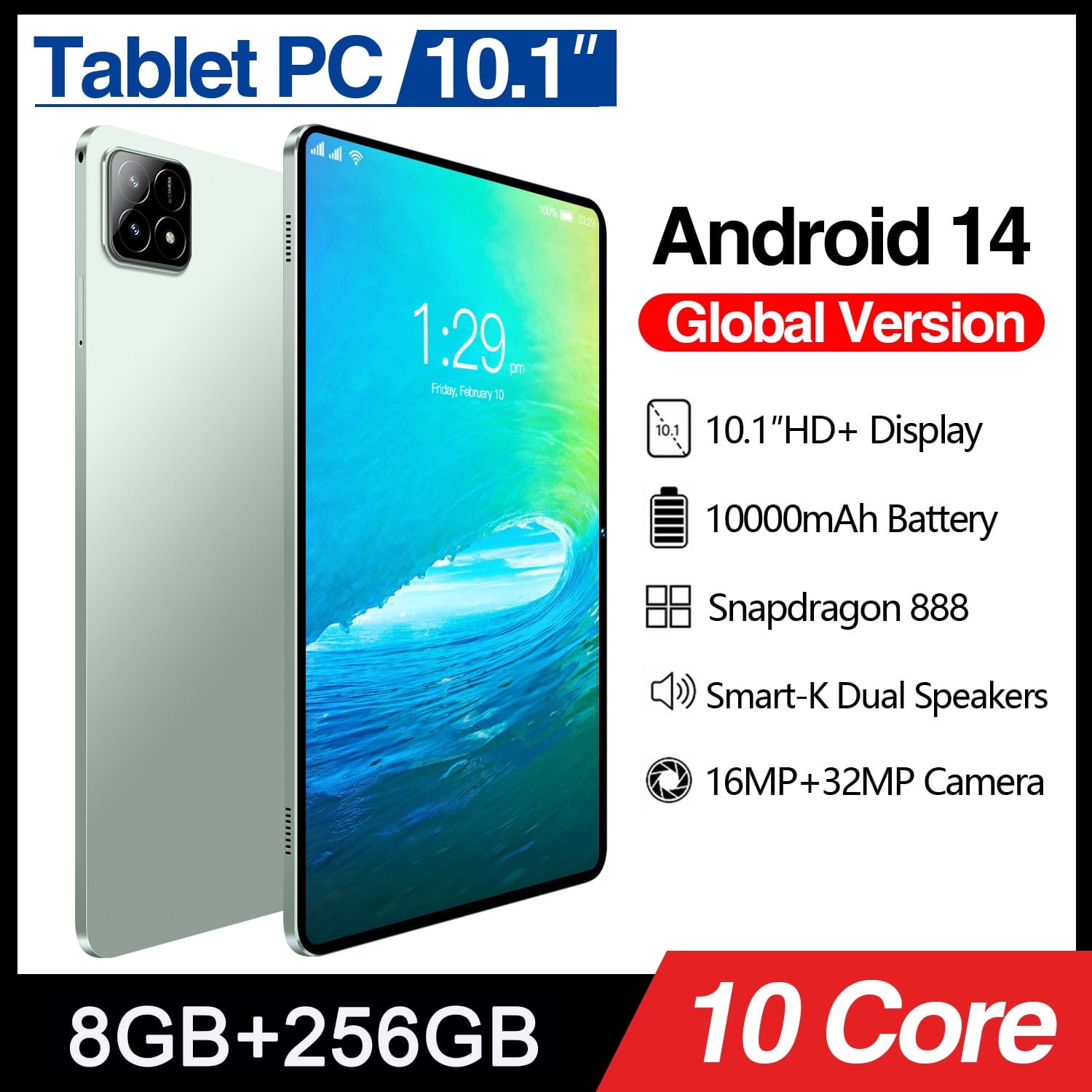 Android 14 Table With 10.1" HD Display, 32MP+16MP Camera, 8GB RAM+256GB ...