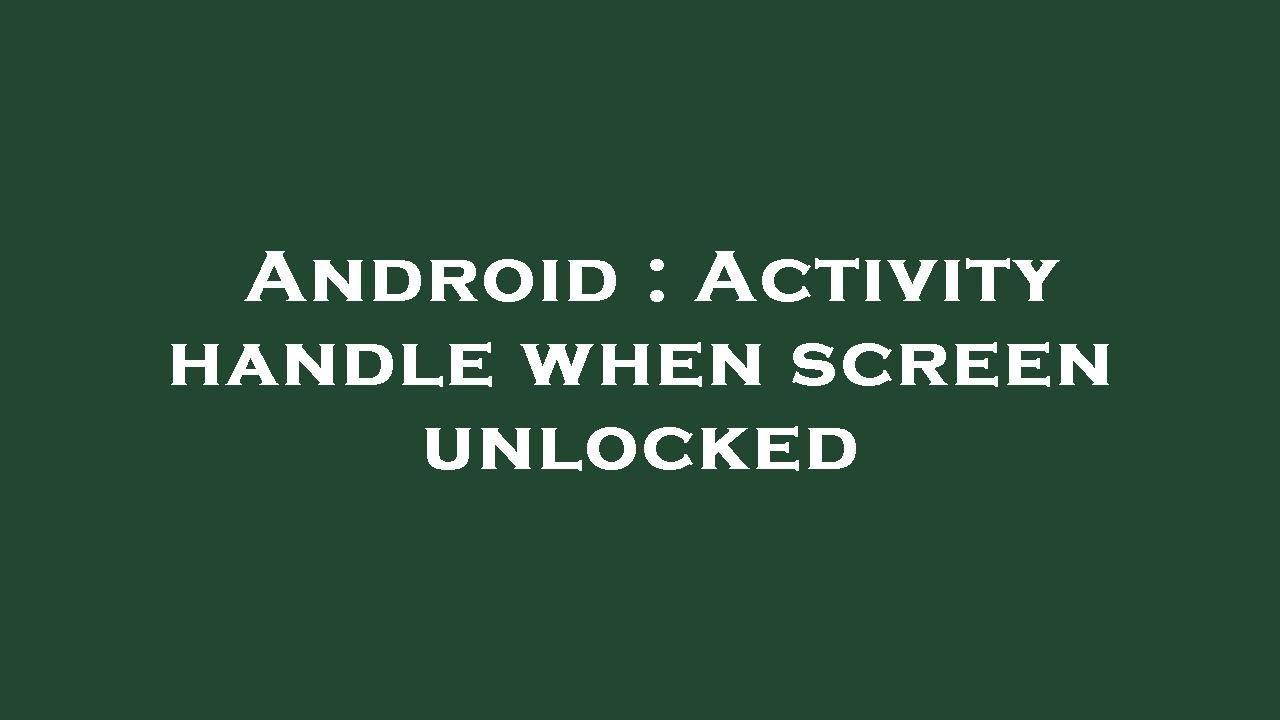 Android : Activity handle when screen unlocked - YouTube