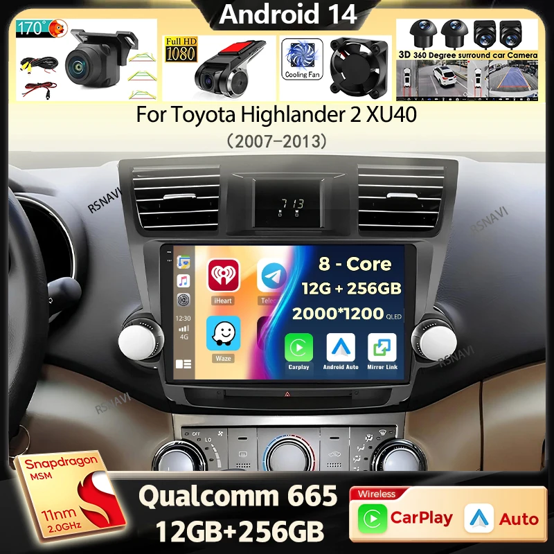 CarPlay For 2008-2013 Toyota Highlander Android 14 Car Radio Stereo GPS ...