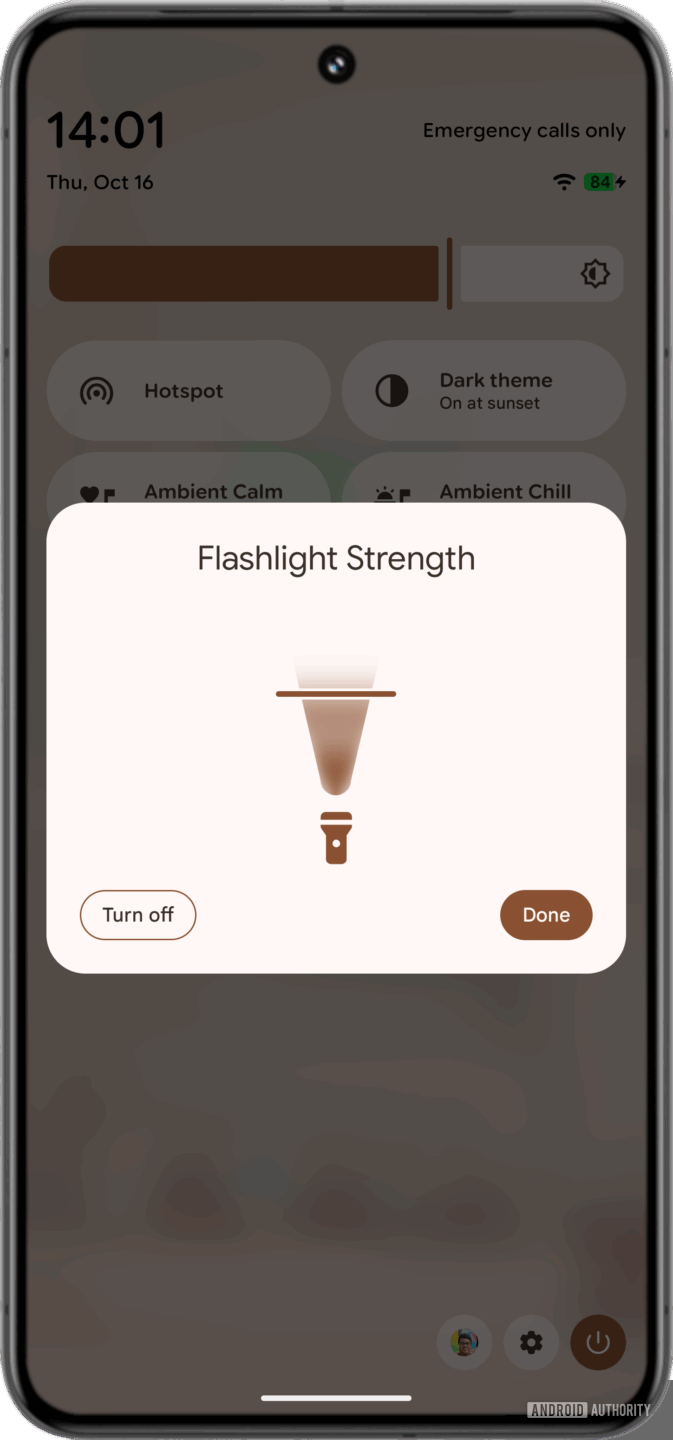Android’s flashlight brightness slider now looks like a real flashlight