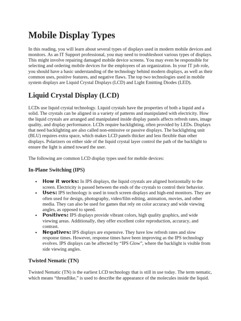 7 Mobile Display Types | PDF | Liquid Crystal Display | Oled
