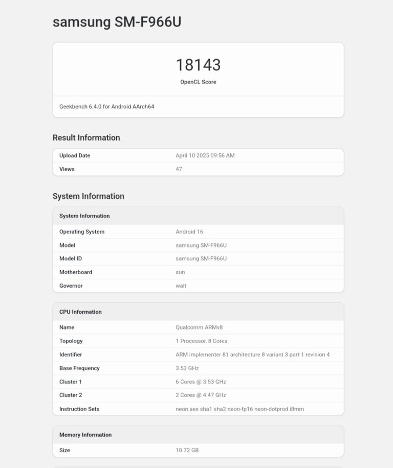 Galaxy Z Fold 7 surfaces on GeekBench with One UI 8 based on Android 16 ...