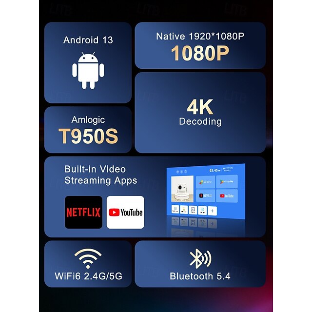 Android 13.0 Smart Projector, 1080P & 4K Support, Rotatable Design ...