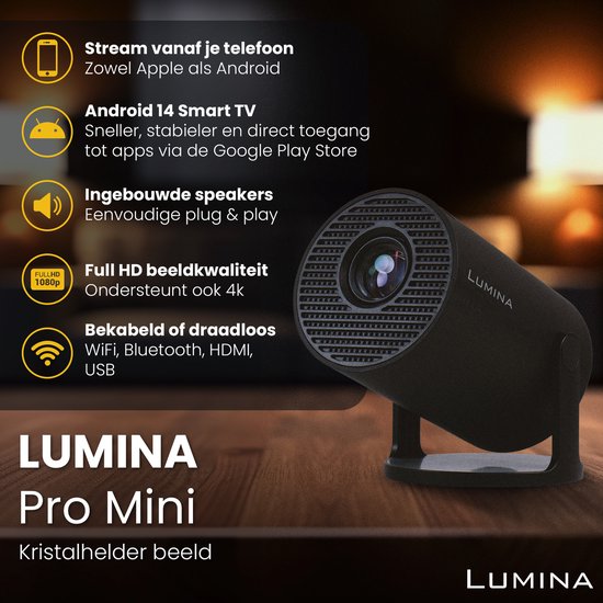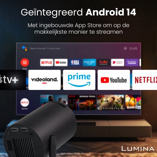 Lumina® Pro Mini Beamer 2026 – Android 14 Smart Projector avec Google ...