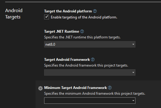 What to use for Target Framework and Minimum Framework for Android Maui ...