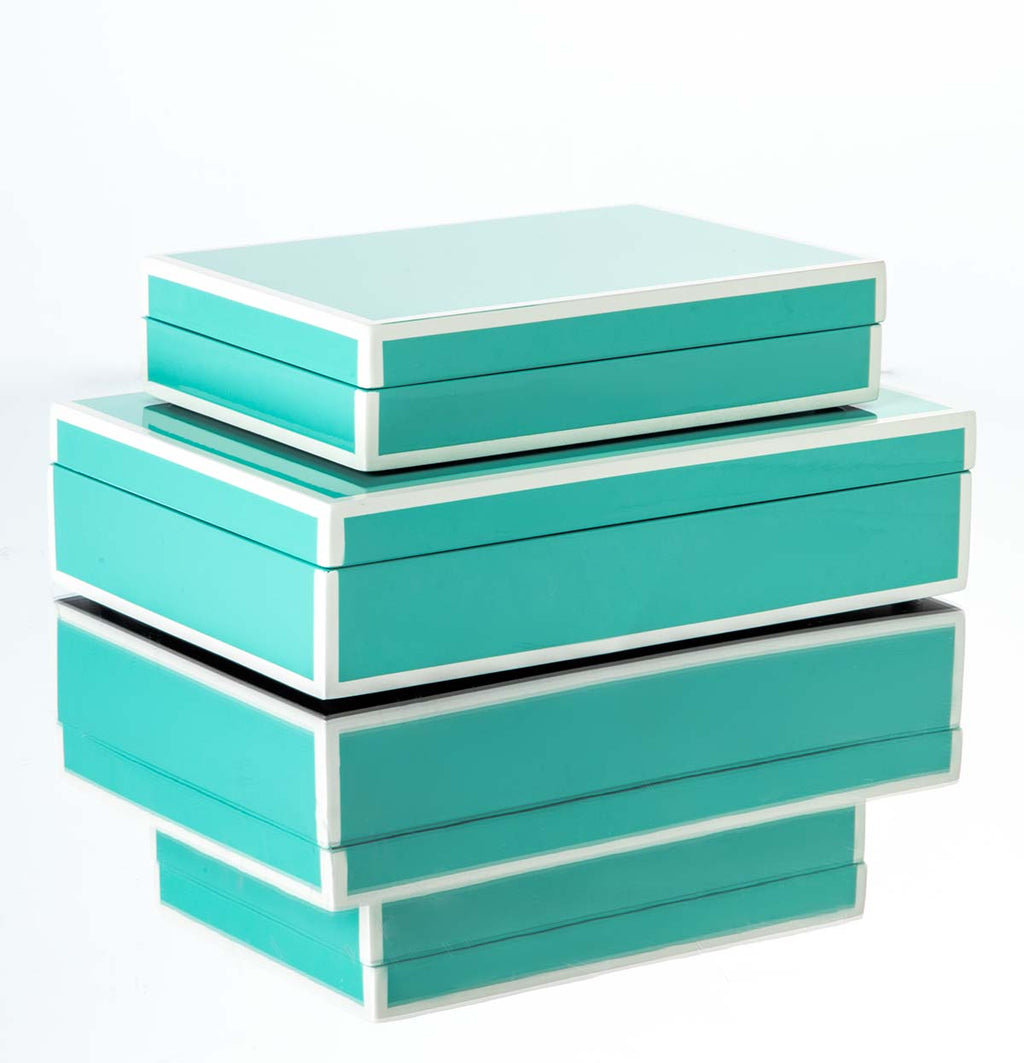 Κουτιά Αποθήκευσης Rectangular Box 2 τμχ Turquoise-Ivory Trim – Anemos